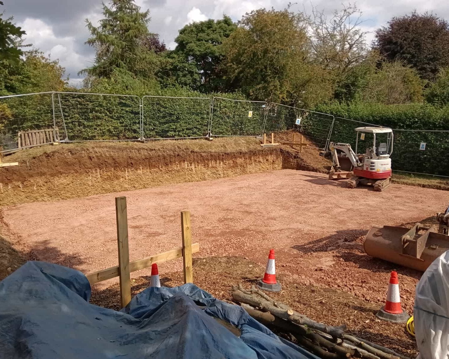 • In Sutton Benger, groundworks are well underway, scaffolding is going up, and framing is just around the corner.